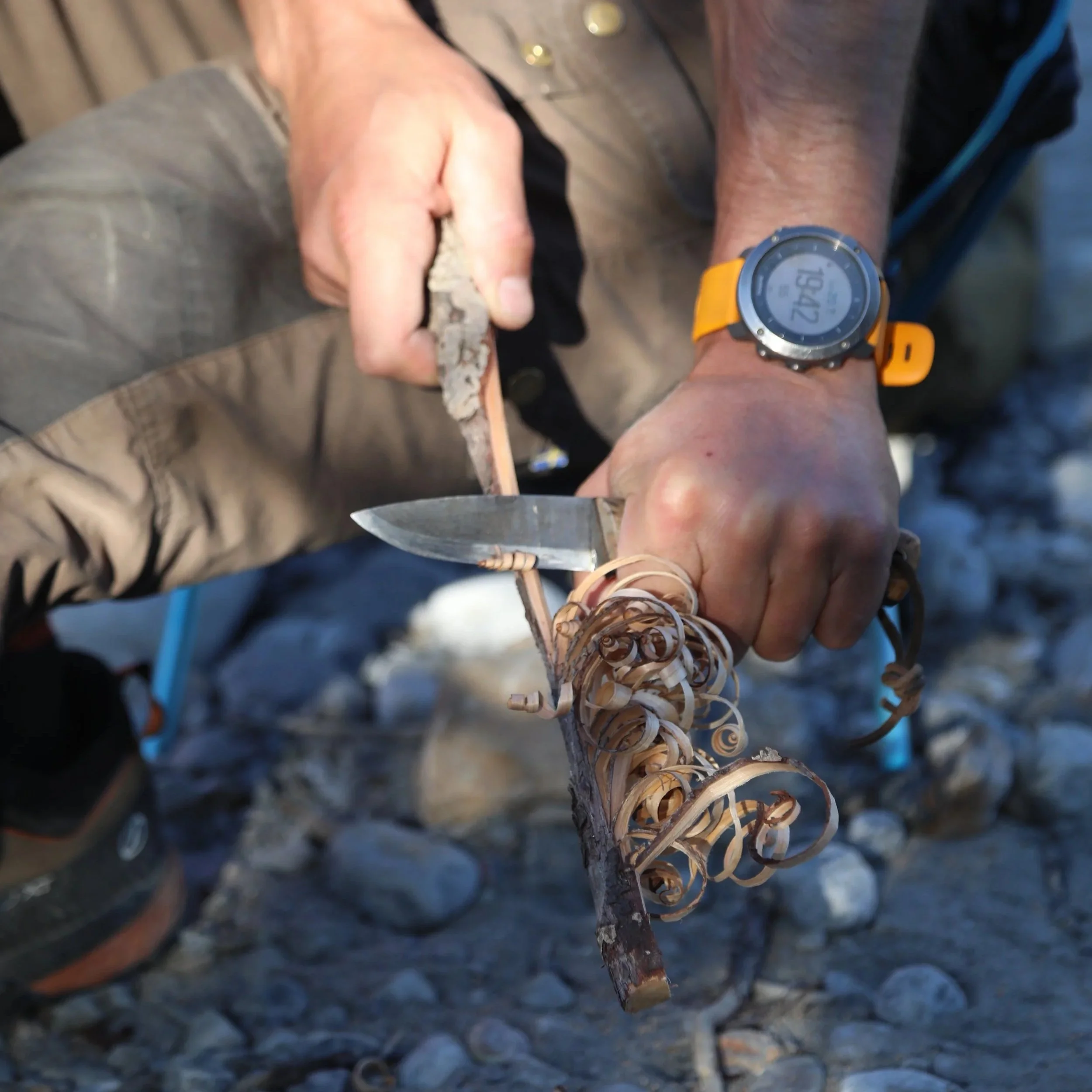 We step off the water and into the trees. Today is about self reliance and the skills that turn a cold night into a comfortable stay. Fire & Water- A look into fire lighting methods including friction fire lighting (bow drill), water purification, and basic knife skills. Shelter and tarpology, learning the knots and hitches to create a storm-proof "home" under the canopy.